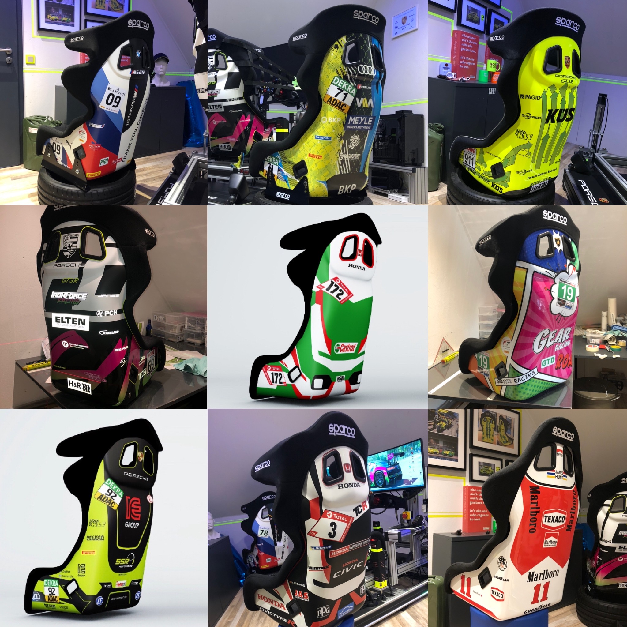 Angefangen von einem Standard Druck mit Linien und vereinzelten Details, über einen Digitaldruck, bis hin zum Lackierten Sitz im völlig individuellen Design ist alles möglich. Die Fertigung eines Sitzdesigns besteht aus mehreren Stufen und ist am Ende eine aufwändige Handarbeit, die nicht selten mehrere Tage Arbeit in Anspruch nimmt.